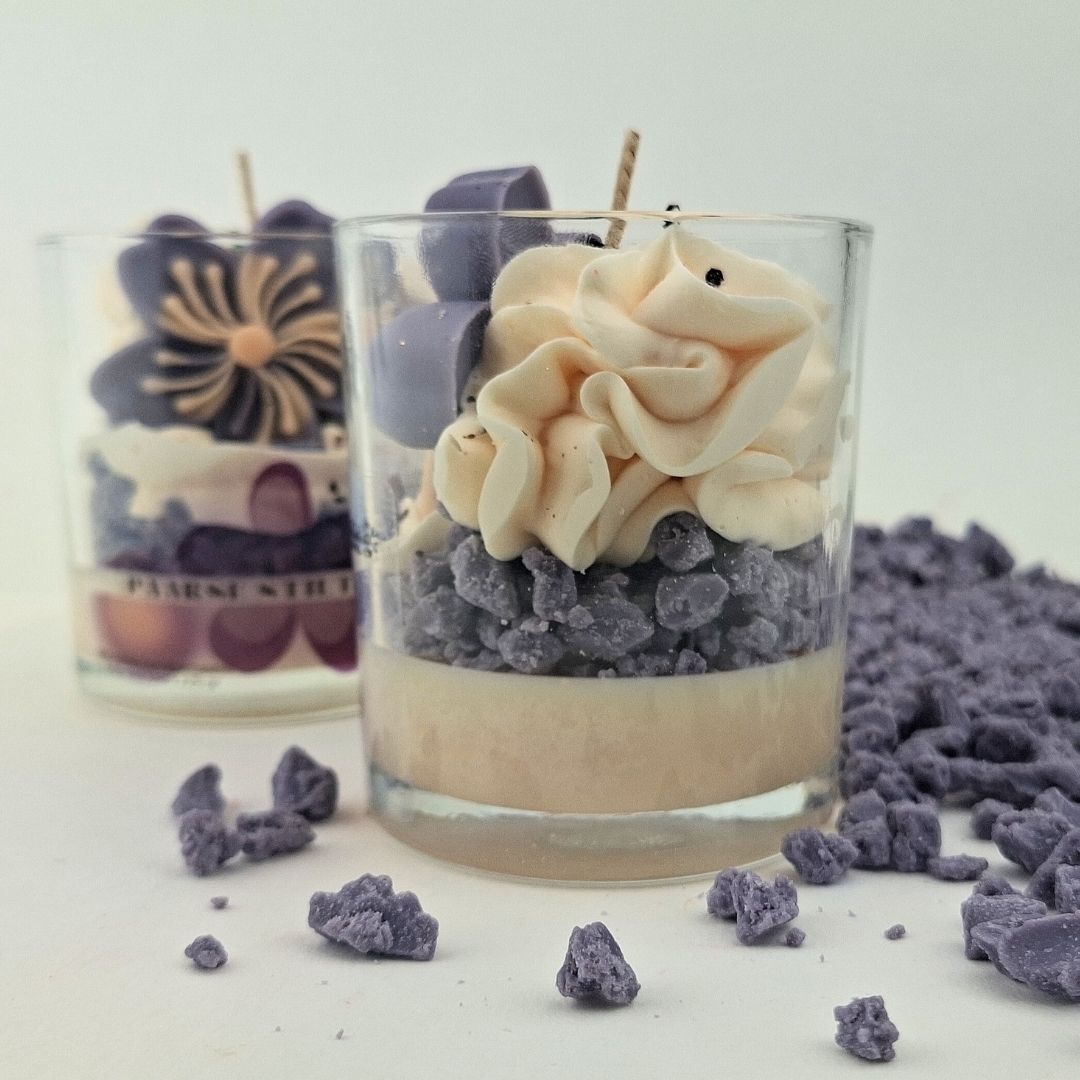 Purple Punch: Een grote, gedetailleerde paarse bloem steelt de show, omringd door speels paars kruim voor die extra textuur.
