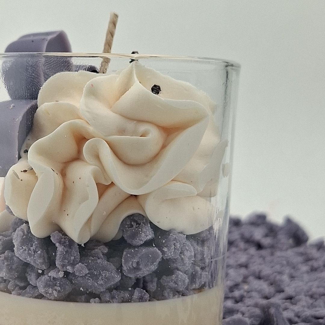 Whipped Cream Magic: De bovenkant is afgetopt met zijdezachte, perzikkleurige ‘opgeklopte’ sojawas. Bijna zonde om op te eten (en dat doen we dus ook niet!).