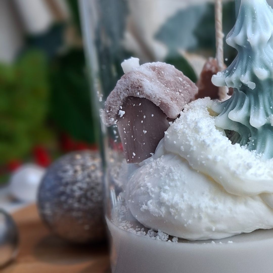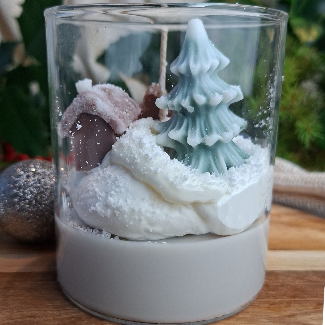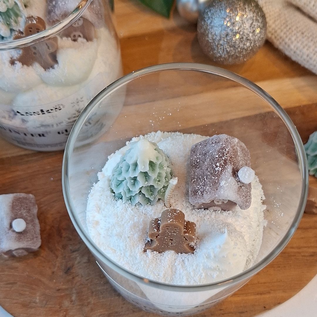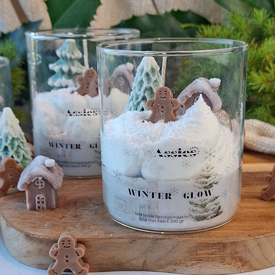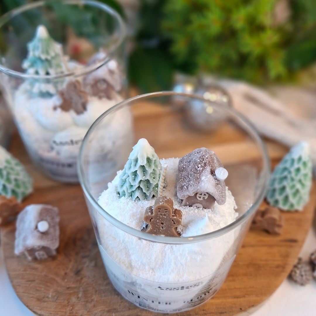 Breng de winter in huis met deze mooie kaars, die de winter weerspiegeld. De was is opgeklopt tot een romige sneeuwdeken met daarin een kerstboom, een sfeervol huisje en meneer Peperkoekman. De geur opent met de frisheid van sinaasappel, warme kruidigheid van kruidnagel en het lichtzoete karakter van winterberries, langzaam verdiept de geur zich naar kaneel, ceder, patchouli, ceder en Siberisch spar.