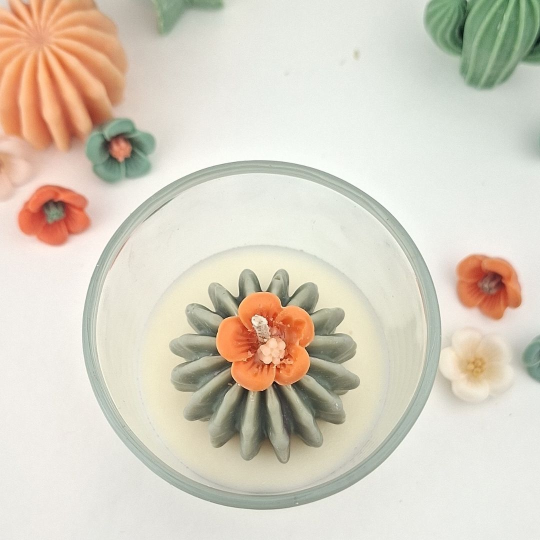 De cactusvorm geeft karakter, met een lief oranje bloemetje erbovenop.